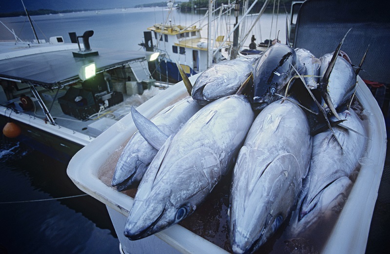 Casi todas las especies de atún contienen pequeñas dosis de mercurio. A menudo, la captura de peces es realizada por cazadores furtivos. Debido a ello, perecen los otros habitantes marinos, y la especie queda gravemente dañada, ya que la pesca, con frecuencia, se lleva a cabo antes del inicio de la edad reproductiva.