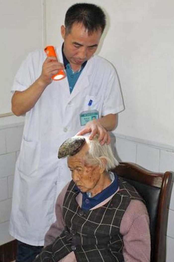 Hace ocho años, en la frente de la anciana Liang Xiuzhen, de la provincia Sichuan, en China, apareció un chichón. Los familiares de ella no le prestaron mucha atención a esta situación, y a la propia Liang no le preocupaba mucho la neoplasia. Sin embargo, con los años, el abultamiento se hacía cada vez más grande. El médico que atendía a la pobre, sólo extendía las manos, sin poder darle respuesta al problema.