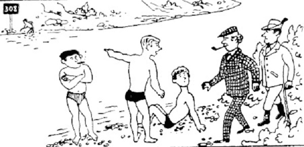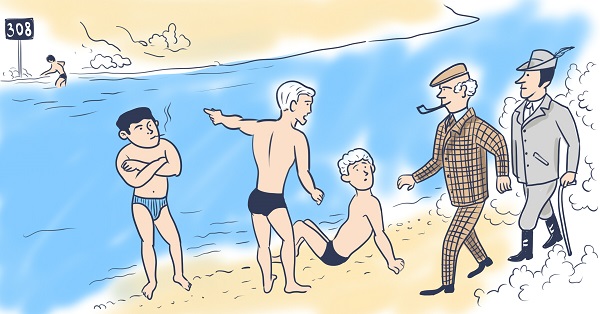 Había un grupo de bañistas. El inspector se les ha acercado y ha preguntado:
