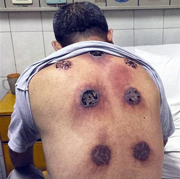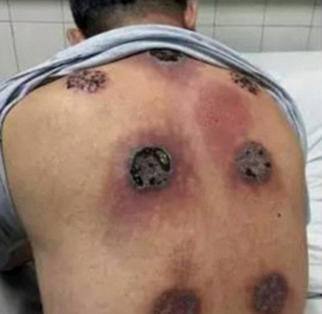 Después de algún tiempo, en la espalda del hombre comenzaron a aparecer ampollas, y llegó el momento, en el que su cuerpo reaccionó con una fiebre muy alta. El señor fue enviado al hospital, donde se le descubrió que en su espalda literalmente se formaron 7 orificios, en el lugar donde se localizaban las ampollas.