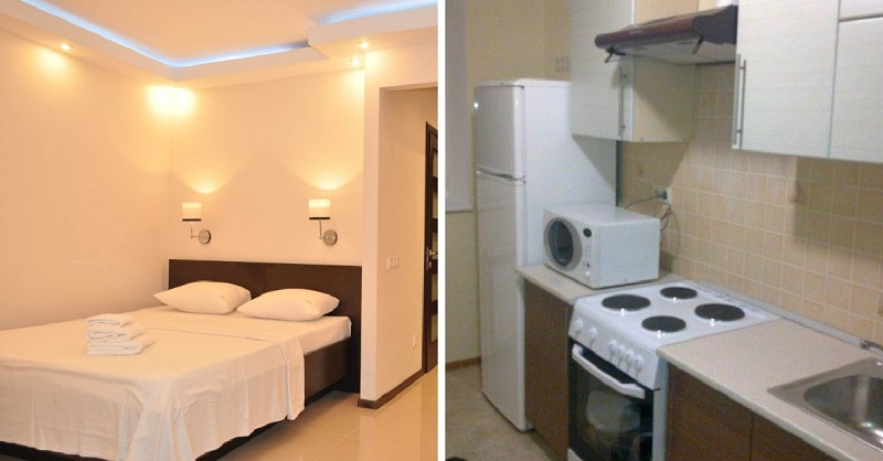 Los apartamentos de una habitación están en un edificio nuevo, y están completamente amueblados.