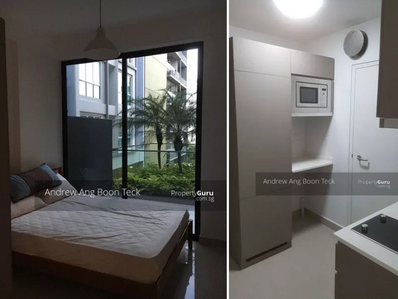 Esta casa tiene un plan abierto, y los apartamentos están parcialmente amueblados. En la cocina se puede ver un microondas, una cocina de inducción y un lavavajillas.