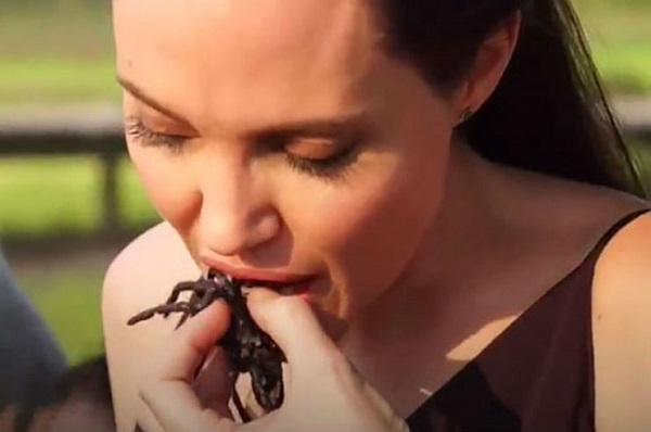 Luego, acompañados por la BBC, Jolie y sus niños degustaron los manjares locales. ¡Un menú de tarántulas y escorpiones, grillos y escarabajos fritos!