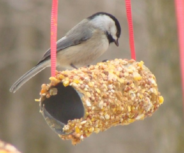 9. Cuida a nuestros amigos emplumados, construyendo este simple comedero para pájaros. Unta el rollo de papel higiénico con el sirope de azúcar o la miel y espolvoréalo con semillas.