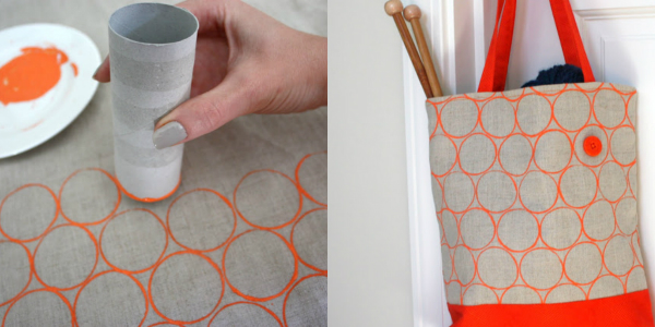14. Con la ayuda de un rollo de papel higiénico, se puede crear un dibujo de diseño exclusivo sobre tela.