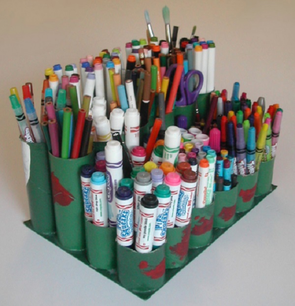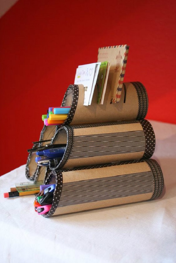 1. En primer lugar, el rollo de cartulina de papel higiénico es un material perfecto para crear organizadores de artículos de papelería.