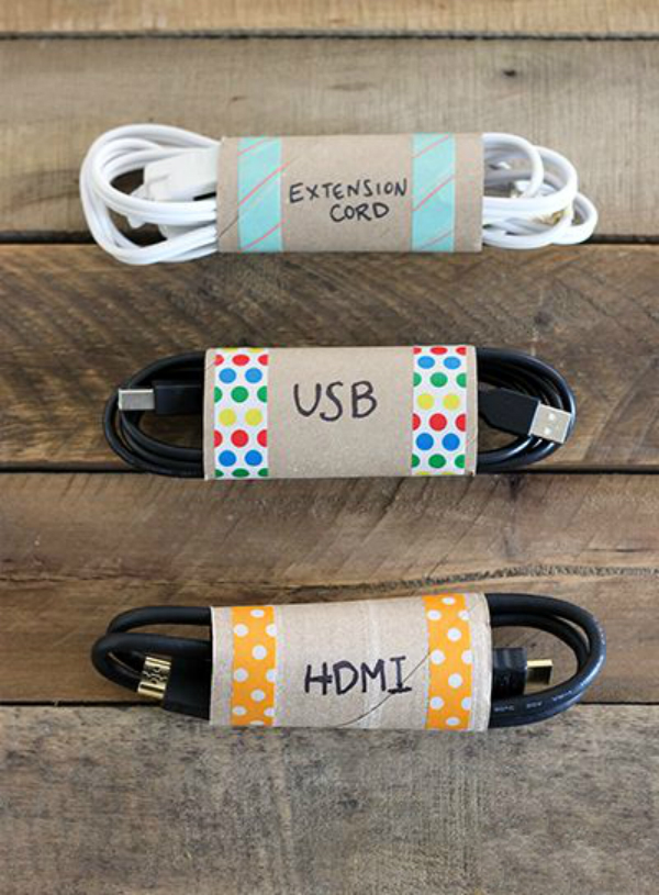 6. Una magnífica idea para guardar cables, especialmente para los que trabajan con ellos a diario y tardan demasiado, buscando el necesario.