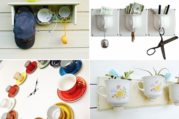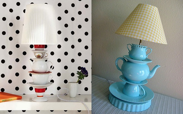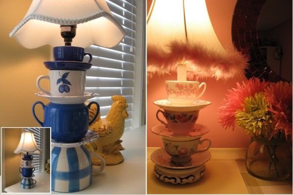 1. Tazas y platillos viejos pueden ser transformados en lámparas muy originales. Así es como se hace el montaje: