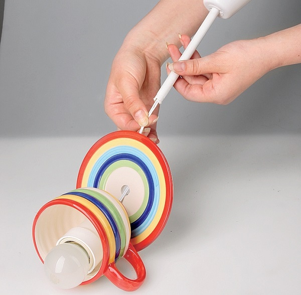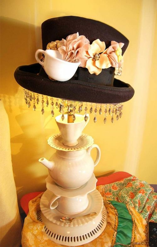 1. Tazas y platillos viejos pueden ser transformados en lámparas muy originales. Así es como se hace el montaje: