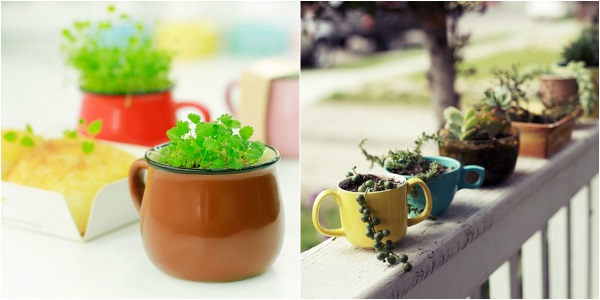 19. ¿Para qué gastar dinero en macetas, si tus plantas lucen tan lindas en tazas?