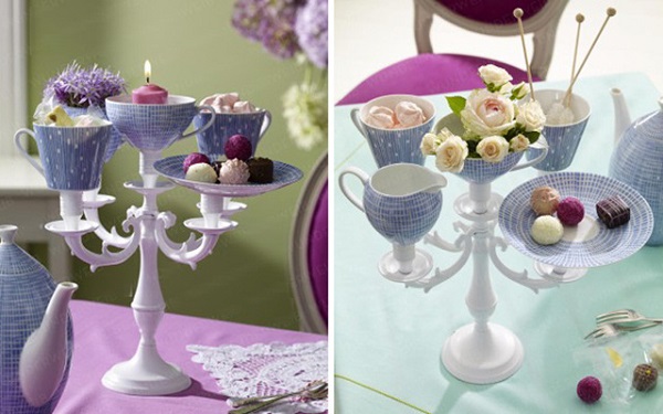 7. Y aquí la composición, compuesta por un candelabro y un juego de té. ¡Ideal para servir bombones!