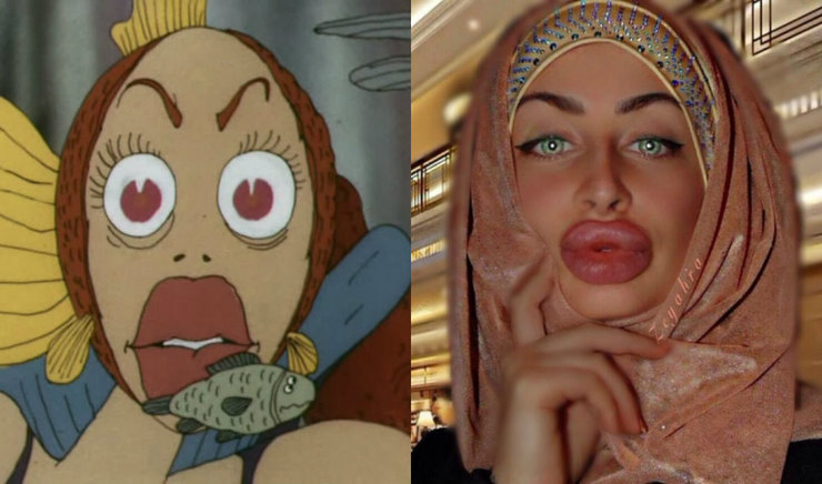 Sin embargo, su singular apariencia ha dado pie a muchas reacciones de público, no menos singulares… Los residentes de los países post-soviéticos enseguida compararon a la bloguera de labios extra gruesos con la mujer-pez de la caricatura «En el azul del mar, espuma blanca» de los años 90.