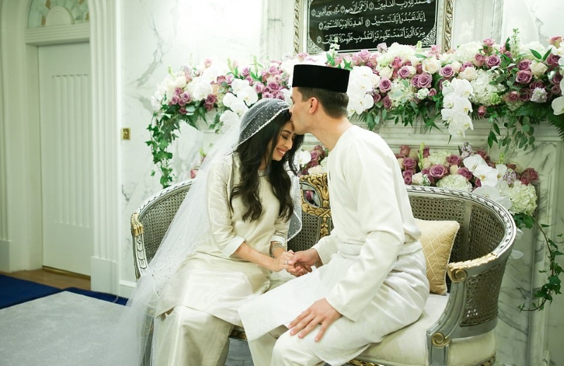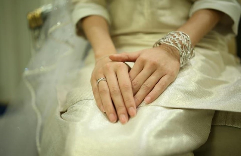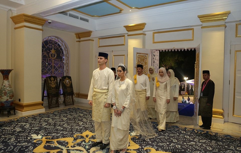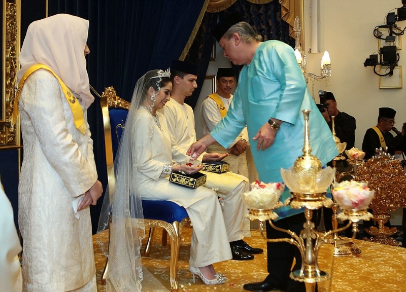 La ceremonia se llevó a cabo, según las antiguas costumbres. Los recién casados estaban vestidos con trajes tradicionales. Muhammad pagó un anillo simbólico, por un precio de 22.5 ringgit (aproximadamente $ 5), como es costumbre en la mayoría de los estados del sur de Johor, y después, como muestra de respeto, besó las manos de los padres de la novia.