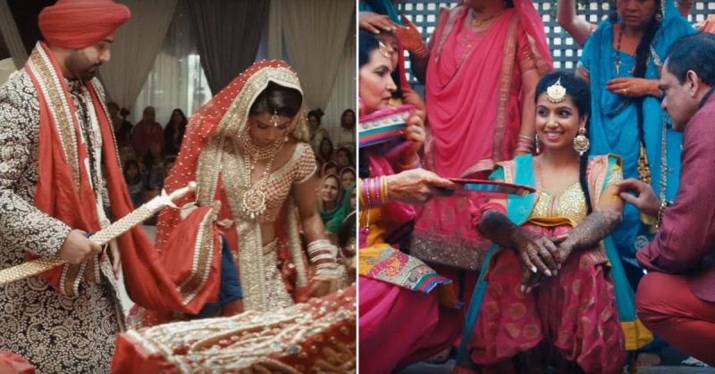 La boda se llevó a cabo, según las costumbres tradicionales de la India. Observa como realizan los trazados del Mehendi (pinturas naturales de henna), el Sangeet (bailes y canciones étnicos), así como la tradicional llegada del novio a caballo, escoltado por amigos y familiares. Y no podía faltar el Khaldi: un rito que bendice a la joven pareja, cubriendo sus caras, manos y pies con una pasta especial a base de cúrcuma.