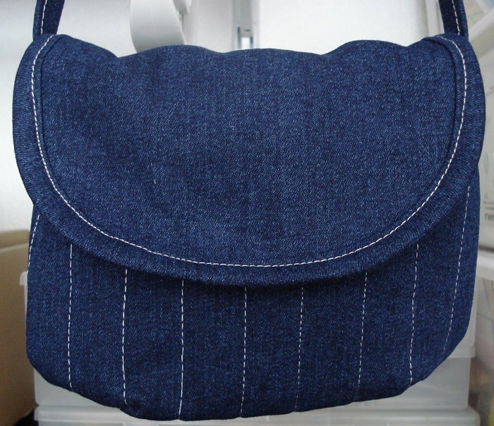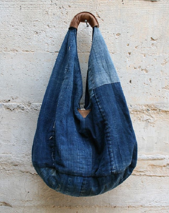 1. Esta bolsa de aspecto modesto, en realidad, es muy espaciosa y cómoda. Y para coserla, solo necesitarás un par de vaqueros – las piernas, y una correa de cuero. Este accesorio puedes decorarlo con remaches, aplicaciones de tela, encajes o flequillos.
