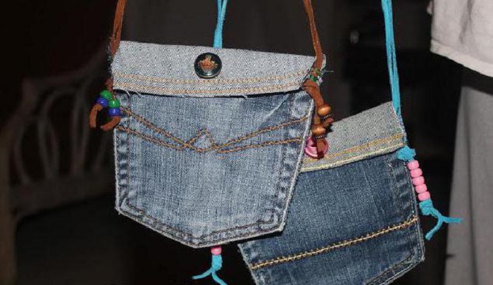 4. Tales bolsos, hechos de bolsillos de los pantalones vaqueros, serán de agrado no sólo para los adultos, también para los niños. ¡Para ello, ni siquiera necesitarás un patrón de costura! Un bolso-bolsillo servirá de maravilla para guardar un par de caramelos para el pequeñín y algunas golosinas para las aves.