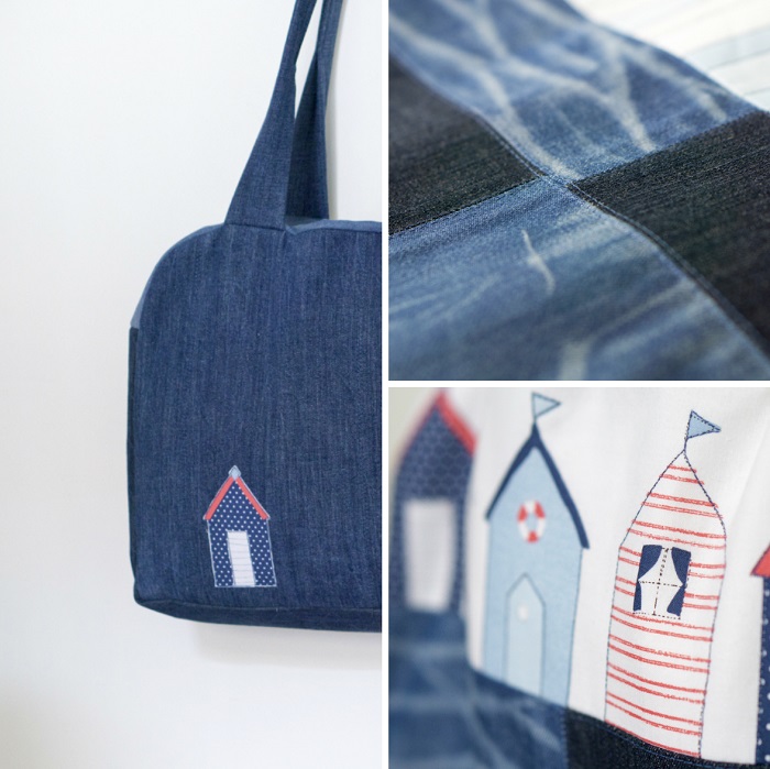 2. ¡Esta bolsa es muy fácil de realizar! Todo lo que necesitas son los pantalones vaqueros de diferentes tonalidades, el hilo y la máquina de coser.
