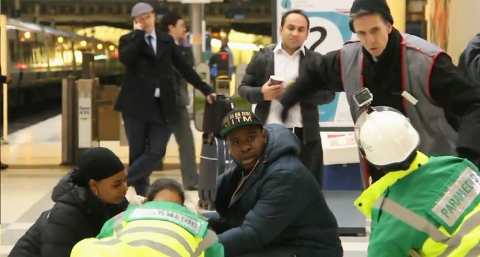 De la multitud de gente que se apresuraba por sus cosas, sólo un par de personas bienintencionadas decidieron acudir en ayuda a la «mujer embarazada». ¡Mientras que más de un centenar de personas solo se agrupaban alrededor, observando, sin intenciones de involucrarse! Huelga decir, resultados decepcionantes…