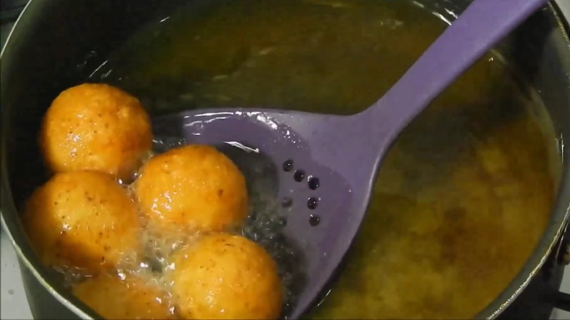 7. Una vez los buñuelos estén bien doraditos, significa que ya están listos.