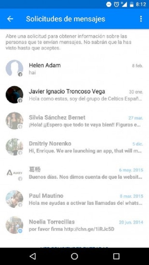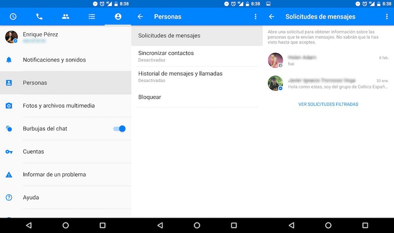 Si dispones de un ordenador o portátil a mano, sigue los siguientes pasos: Mensajes – Solicitudes de mensajes – Ver solicitudes filtradas.