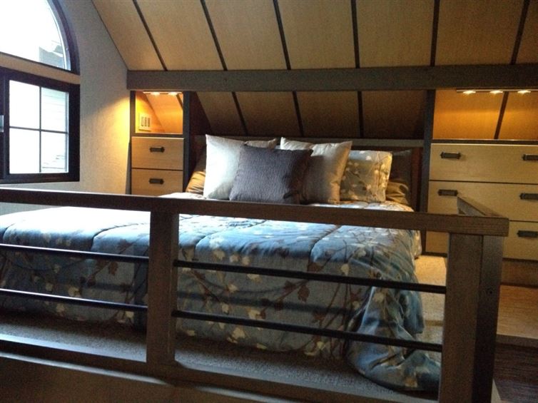 En la segunda planta hay un dormitorio con una cama enorme y confortables gabeteros.