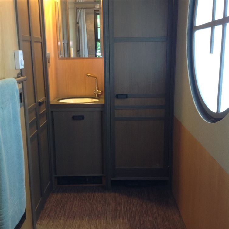 Cerca de la cocina se encuentra un pequeño cuarto de baño, con un jacuzzi. Está claramente diseñado para ser usado, principalmente, como un cuarto de ducha.
