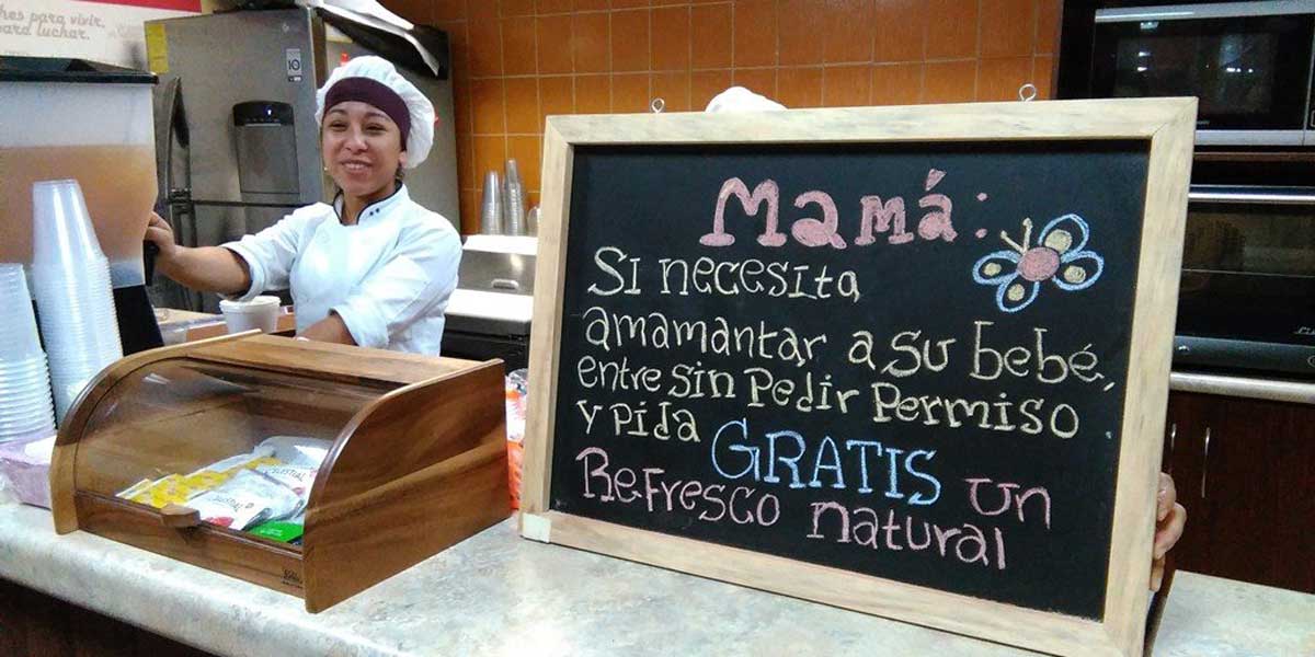 «Vi la iniciativa y creo que es una buena forma de promover la lactancia. El establecimiento no es muy grande, pero las puertas están abiertas si una madre necesita de ese apoyo», – así se expresa Marianela Trujillo, dueña del El Rinconcito Bristo.