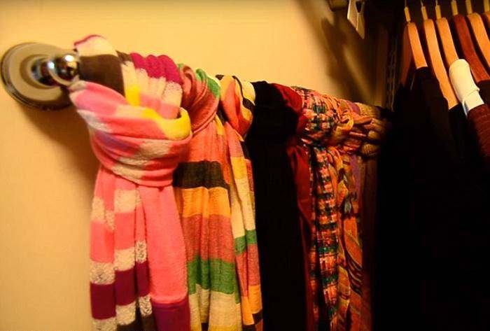 Pañuelos colgando en el toallero. Solución inusual pero elegante.