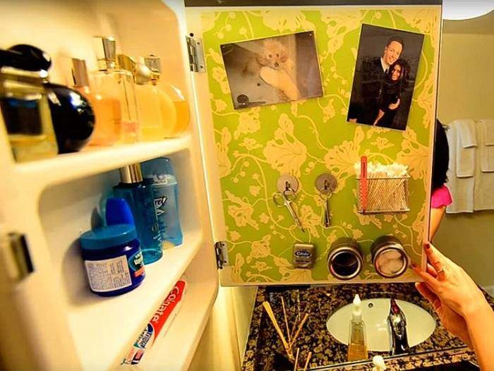Los armarios también se mantienen absolutamente ordenados. Estos ganchos en la esquina son perfectos para colgar collares, y para que no se enreden.
