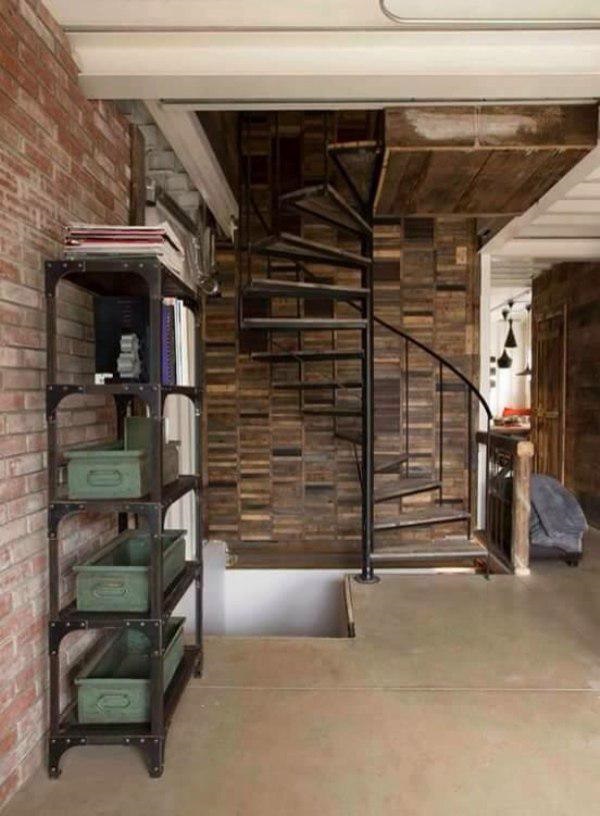 En la decoración de la casa predominan materiales como ladrillos y madera. Un lugar especial en el interior ocupa una muy original y práctica escalera de caracol…