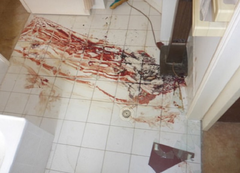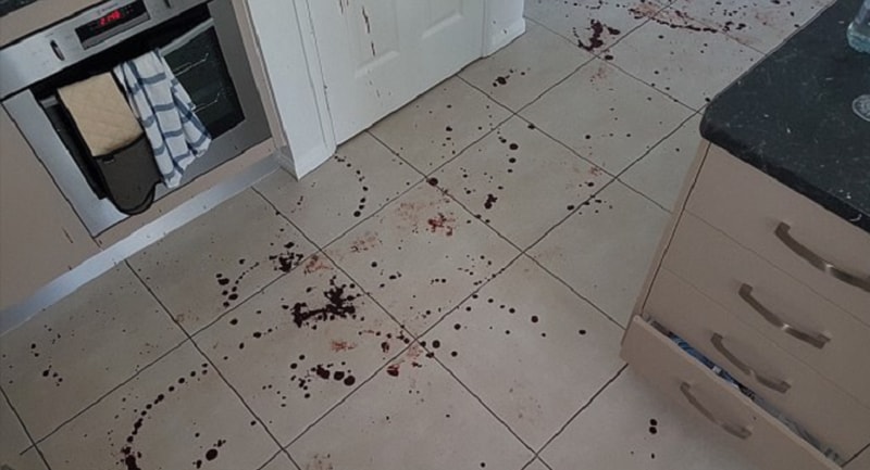 - Las salpicaduras de sangre en el piso permiten restaurar la secuencia de eventos durante el crimen.