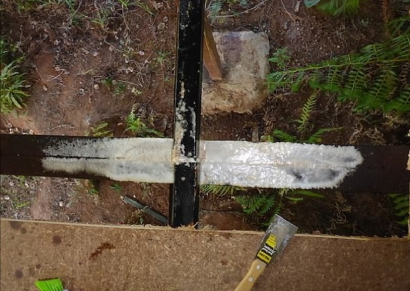 - Esta viga de madera fue cubierta con un reactivo especial, para revelar los restos humanos en ella.