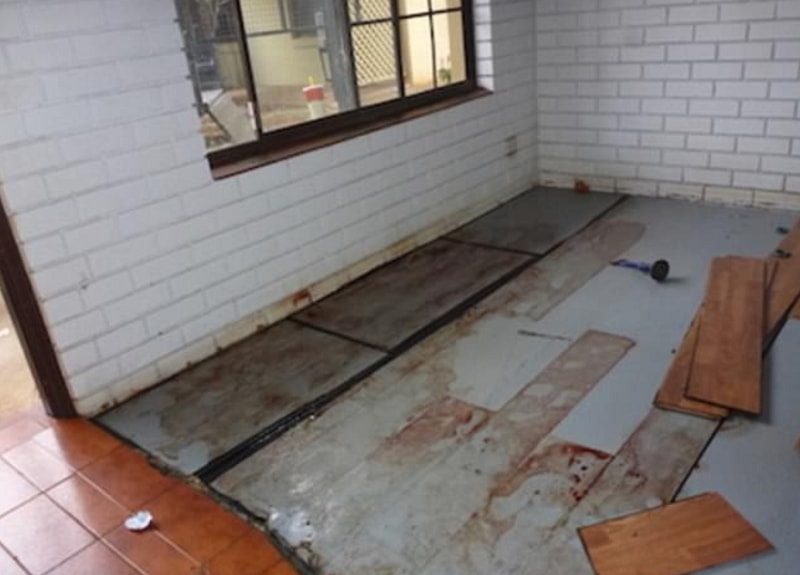 - Tuvieron que derribar el suelo, para deshacerse de las huellas de sangre que penetraron bajo las tablas.
