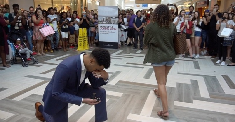 Algo así sucedió con nuestros protagonistas de hoy. Este joven decidió hacerle una propuesta de matrimonio a su novia, justo en medio de un centro comercial, y frente a un gran número de personas. Ya llevaban saliendo durante 4 años, por lo que creyó que ya era momento de dar el siguiente paso.