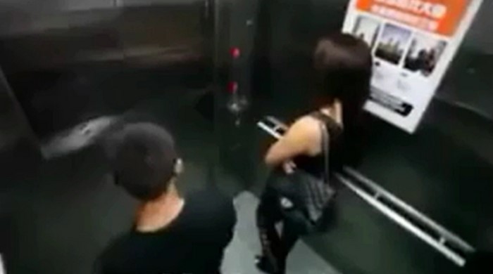 El joven del siguiente video no era ladrón, sino un bromista. Al parecer, deseoso de quedarse a solas con la chica, constantemente trataba de estropear el ascensor, impedía que la cabina se cerrara, le propinaba golpes a los botones. Al salir, la muchacha, que por supuesto ya había perdido la paciencia, con todas sus fuerzas, lanzó al chistoso contra el piso… ¡y lo dejó allí!