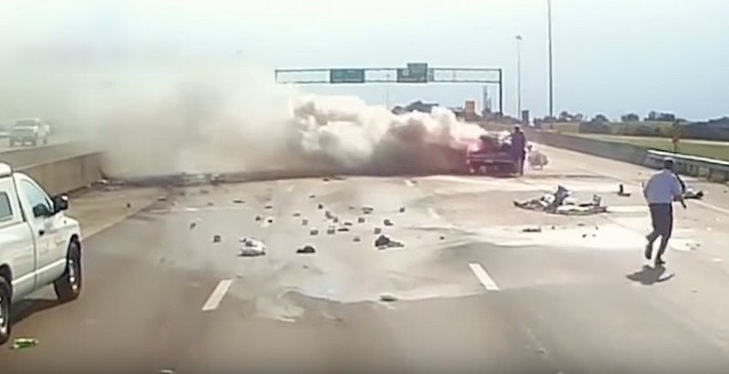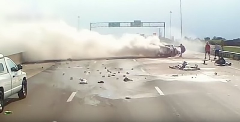 Todo comenzó con una colisión entre un coche y un camión. En el coche viajaba una mujer con su nieta de un año de edad, quien, al perder el control volante, se estrelló de lado con el otro vehículo. ¡Los cilindros de gas del camión detonaron, después de lo cual la mitad de la carretera, de repente, fue envuelta en llamas!