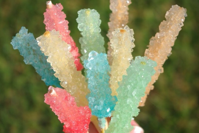 Cuando el agua se asienta, la saturación del azúcar disminuye, por lo que empieza a acumularse en las paredes del recipiente y en el palito. Eso hace que se formen los cristales que luego tú y tus niños se disfrutarán.
