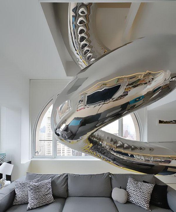 16. La escalera de caracol-montaña para deslizarse. Además de uso diario, tiene incorporada esta divertida opción para los niños.