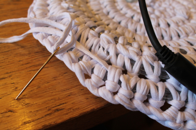 9. Para cerrar el extremo del tejido de punto, utiliza una aguja grande o gancho.