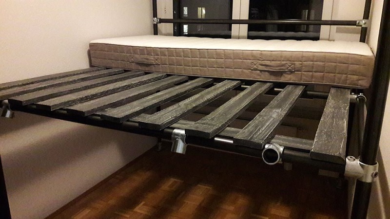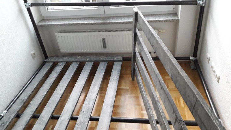 3. Luego, le colocó unas juntas diseñadas para una cama, una capa de imprimación y una capa de pintura.