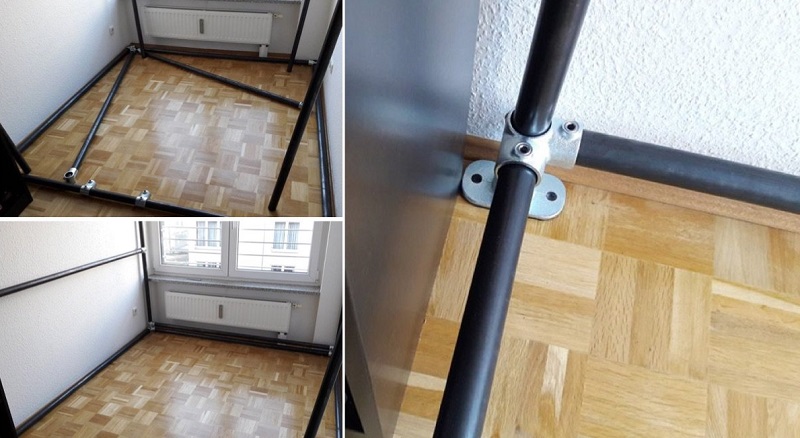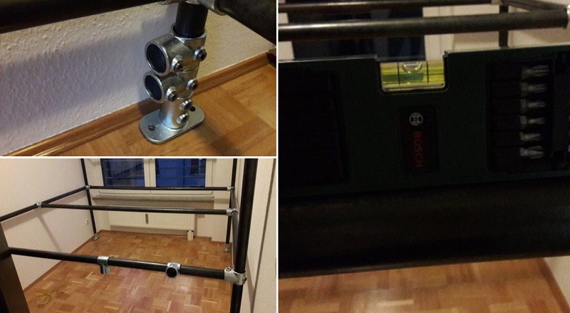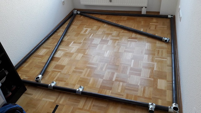 5. El primer paso: Hacer un cuadrado de tubos en el suelo de la habitación.