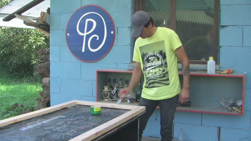 1. Para iniciar, cubre el marco de madera con pintura brillante.