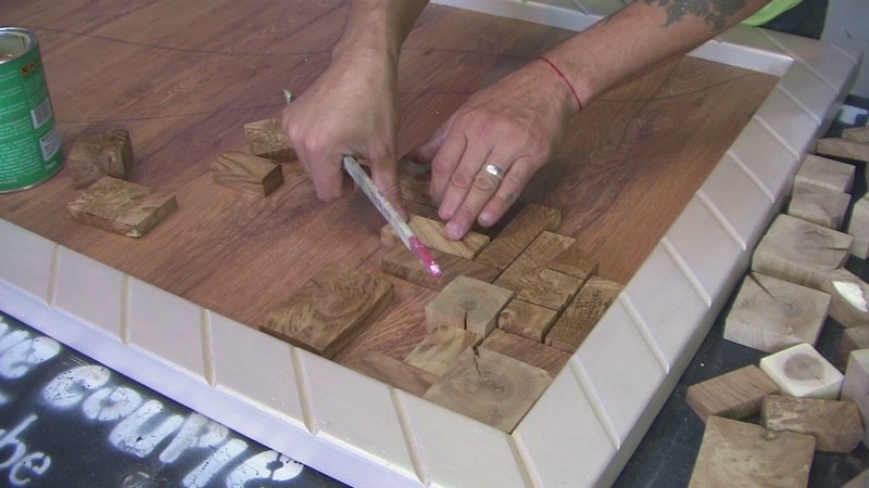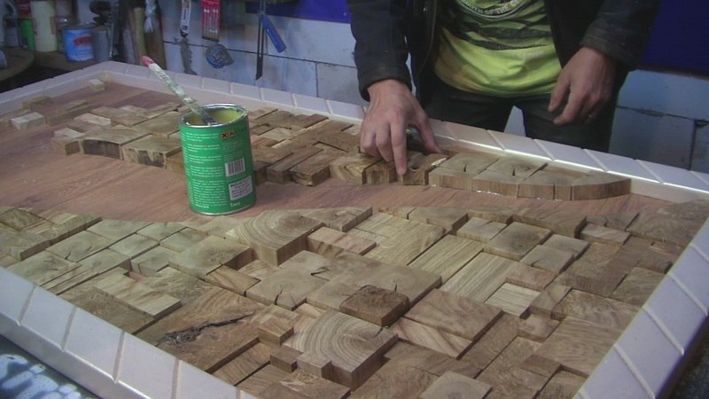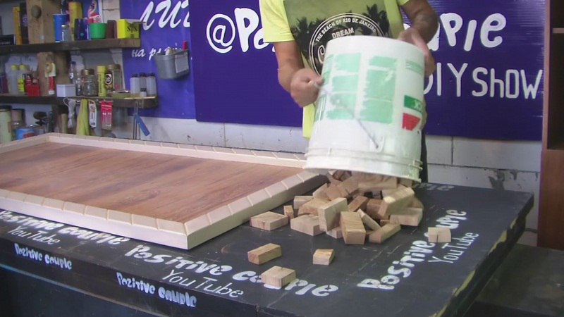 3. Ahora, toma los trozos de madera. Mientras más variadas estén las piezas, más interesante saldrá la imagen. En ausencia de un material adecuado, tales trozos pueden ser cortados manualmente.