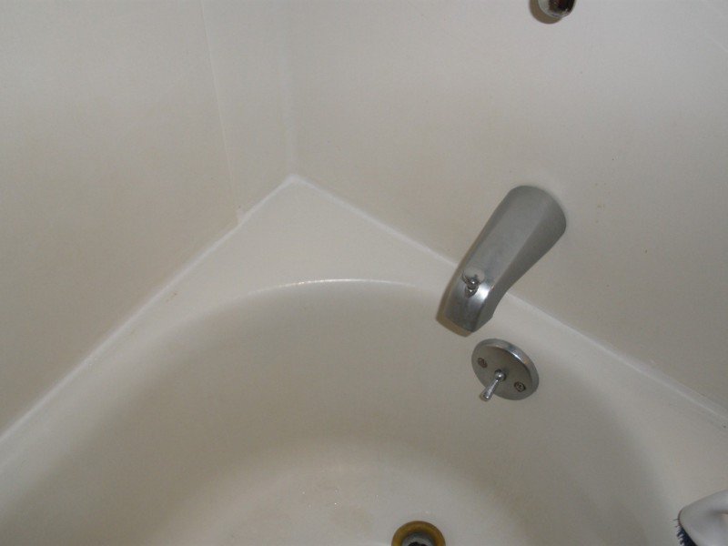 3. Así es como lucirá tu cuarto de baño al día siguiente. Para quitar el resto, utiliza la guata con el blanqueador y un cepillo de dientes viejo.