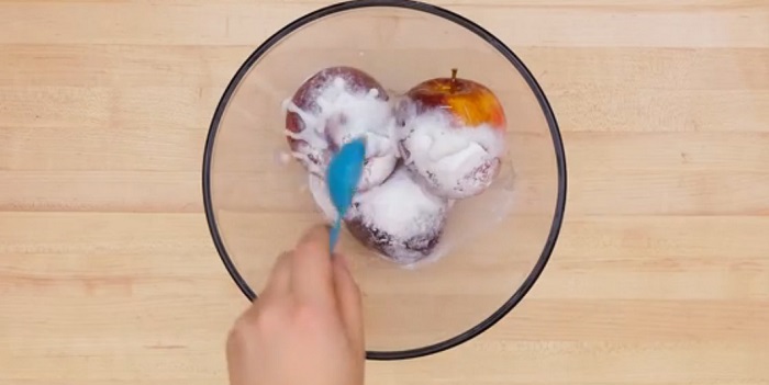 3. Coloca las manzanas en una mezcla de bicarbonato de sodio y jugo de limón.