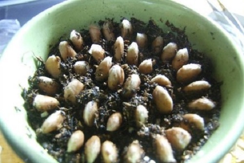 3. Deposita varias piedras en el fondo de la maceta, para crear un drenaje, y rellénala con tierra húmeda. Siembra las semillas con el extremo afilado hacia abajo. Verifica que entre las ellas haya suficiente espacio – unos 5 mm, aproximadamente.