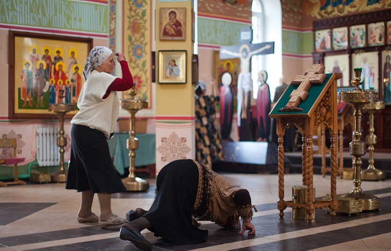 A menudo, cuando vamos a la iglesia, vemos a las personas viejas que no sólo oran de pie cerca del Evangeliario, sino que realizan una serie de inclinaciones, hasta tocar el suelo. A los jóvenes, generalmente, ver esto los deja perplejos – ¿Por qué lo hacen, si se puede orar de pie?