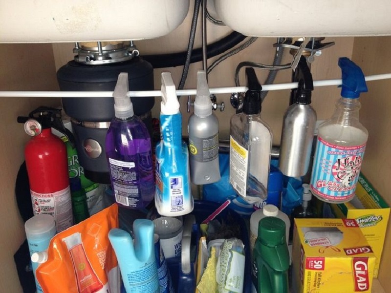 16. Fijar un tubo de plástico en el interior del cajón de la cocina, le dará un sostén adicional a las botellas de los productos de limpieza del hogar.
