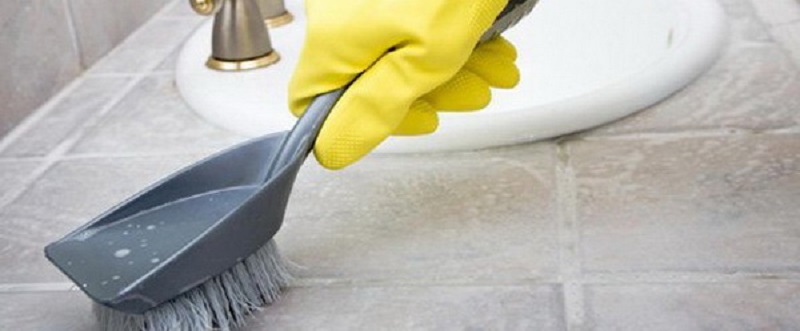 1. Retira la suciedad de las baldosas y de las juntas de las baldosas con ayuda de un cepillo duro y un agente de limpieza.