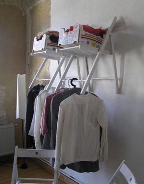 14. Sillas plegables – otro extraordinario ejemplo de perchas con repisas.